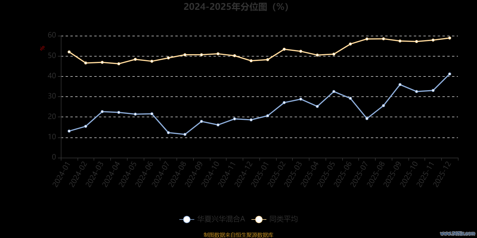 通过所选区间该基金净值增长率分位图鼎泽配资,可以观察该基金与同类基金业绩比较情况。图为坐标原点到区间内某时点的净值增长率在同类基金中的分位数。