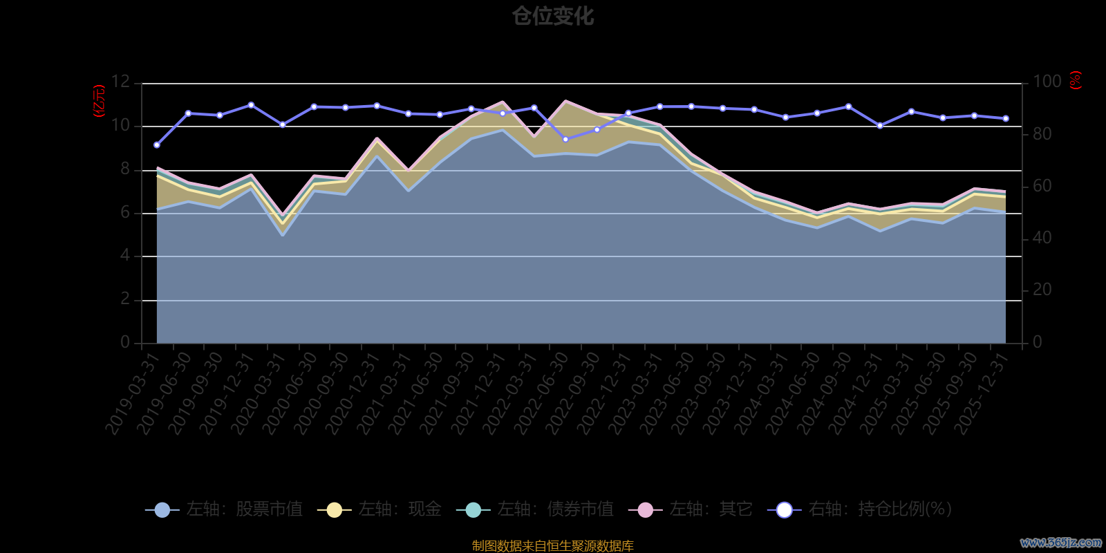 据定期报告数据统计,近三年平均股票仓位为88.43%,同类平均为72.57%。2019年末基金达到91.52%的最高仓位,2019年一季度末最低,为76.19%。