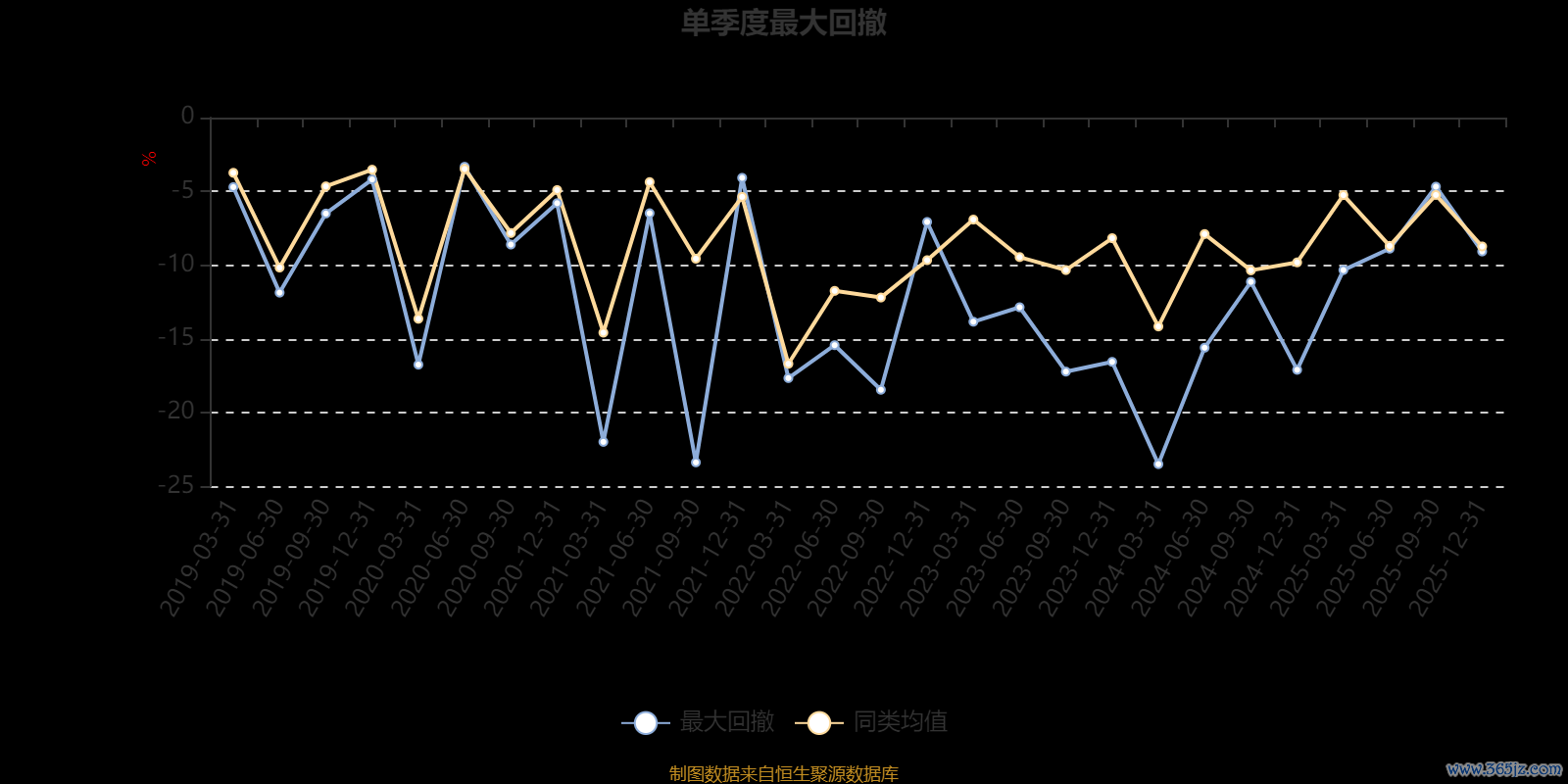 通过所选区间该基金净值增长率分位图,可以观察该基金与同类基金业绩比较情况。图为坐标原点到区间内某时点的净值增长率在同类基金中的分位数。