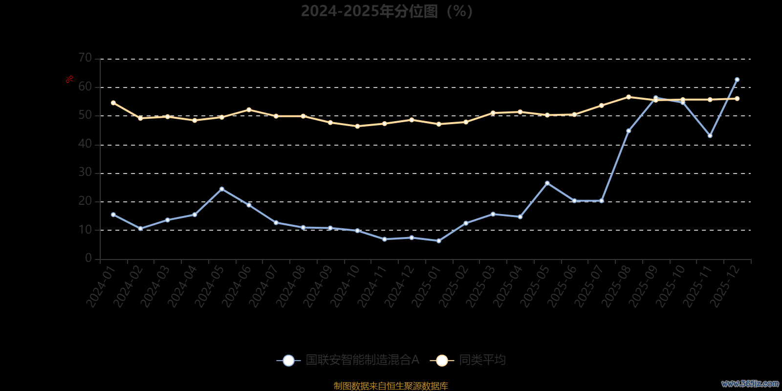 通过所选区间该基金净值增长率分位图龙辉配资,可以观察该基金与同类基金业绩比较情况。图为坐标原点到区间内某时点的净值增长率在同类基金中的分位数。