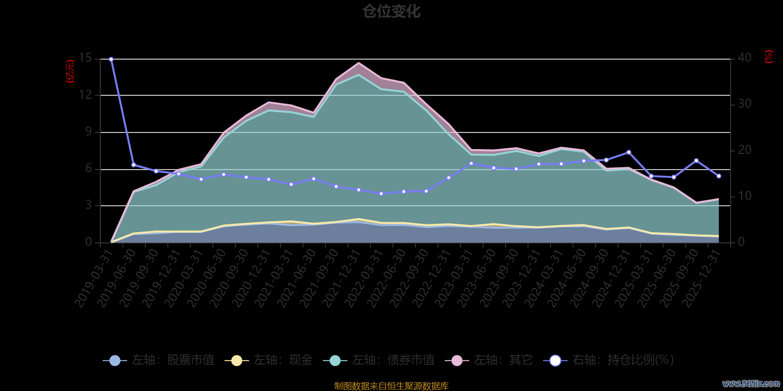 据定期报告数据统计,近三年平均股票仓位为16.68%,同类平均为72.57%。2019年一季度末基金达到39.86%的最高仓位,2022年一季度末最低,为10.66%。