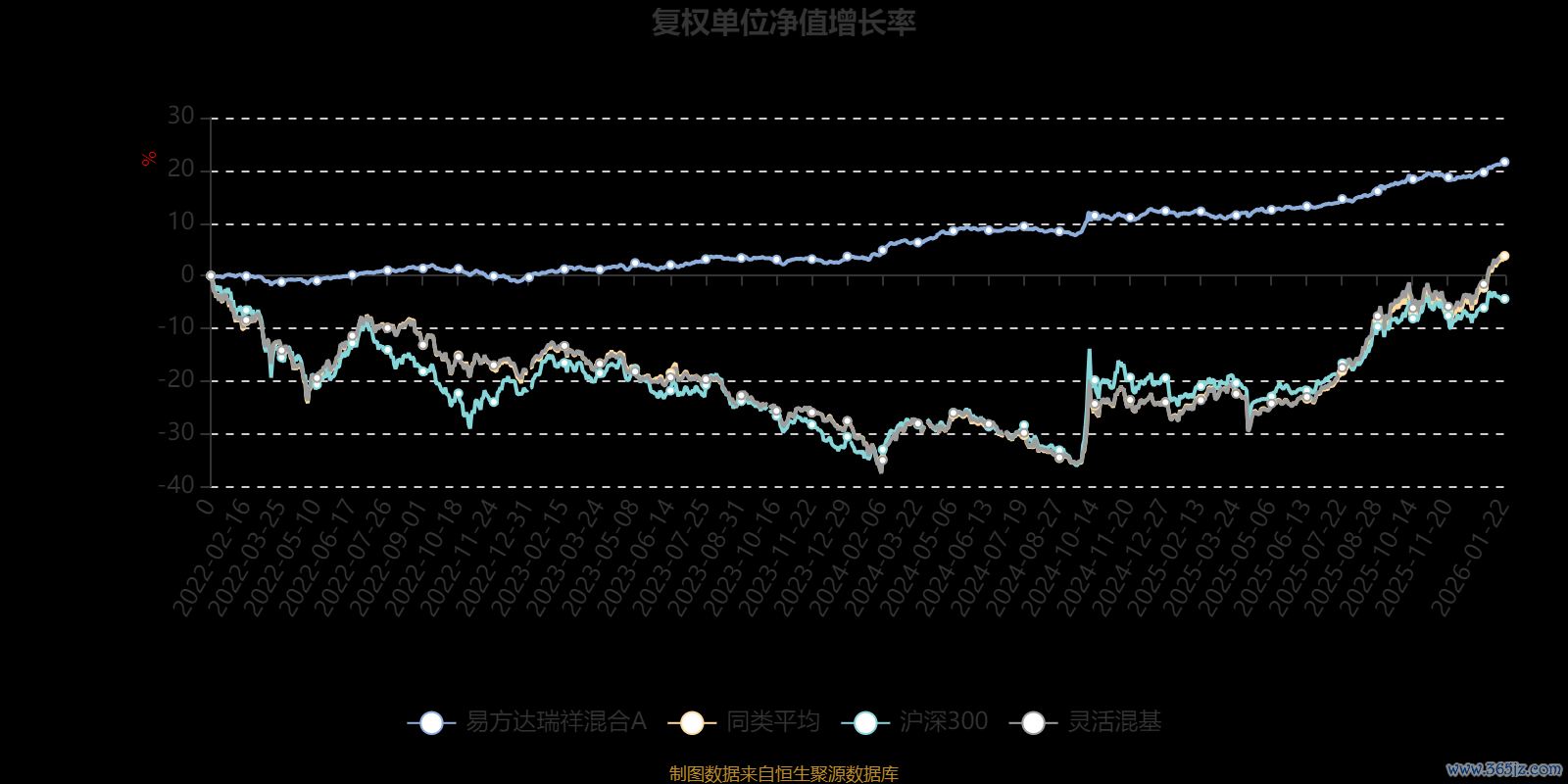 该基金属于灵活配置型基金。截至1月22日,单位净值为1.661元。基金经理是林虎,目前管理的4只基金近一年均为正收益。其中,截至1月22日,易方达磐泰一年持有混合A近一年复权单位净值增长率最高,达8.95%;易方达瑞富混合I最低,为5.02%。